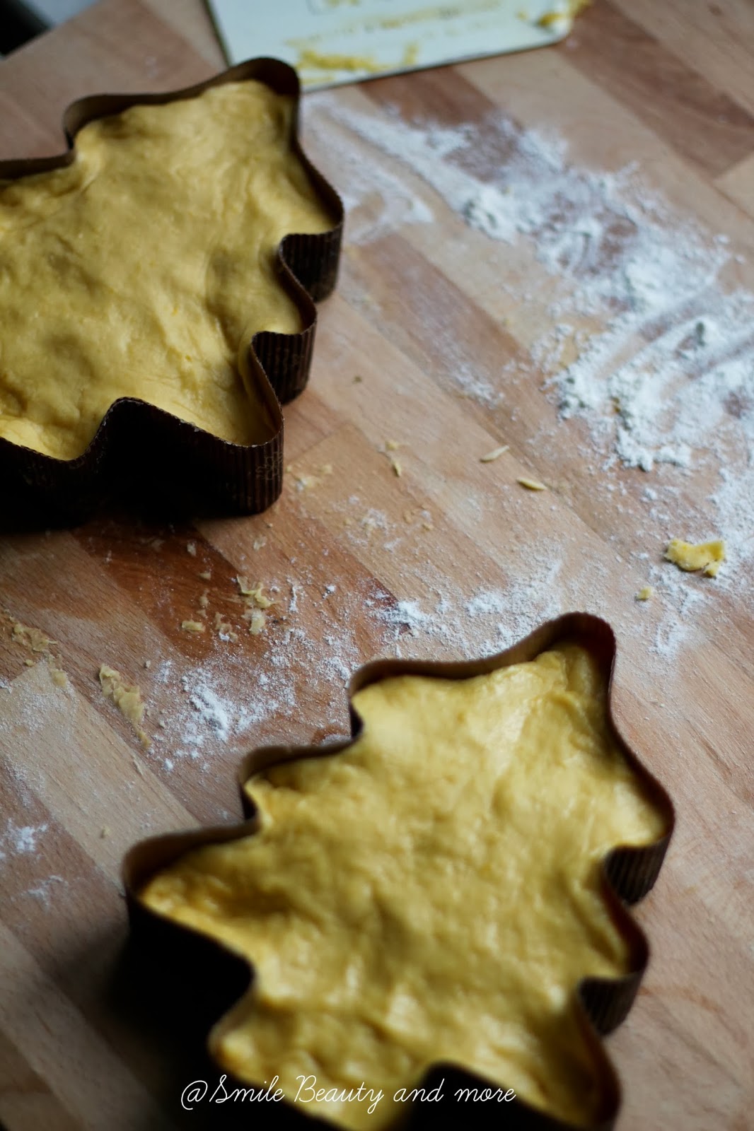 Ho pensato dìi utilizzare degli stampi a forma di albero di Natale da 200g ciascuno e poi con l’impasto rimasto ho formato anche dei piccoli pandorini,