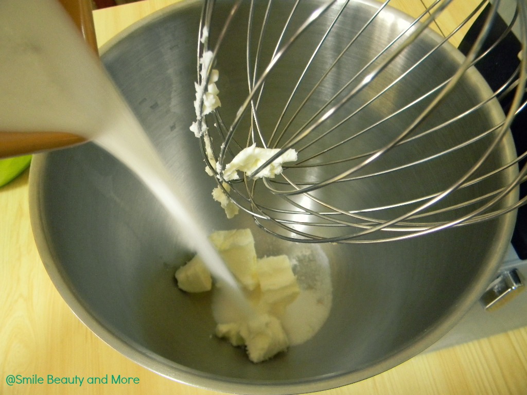In una planetaria, (ma va anche bene un frullino) lavorate per almeno 3 minuti il burro con lo zucchero fino ad ottenere una crema soffice e spumosa.